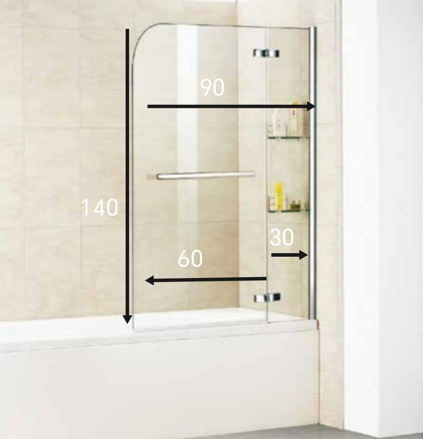 Over the Tub Shower Door with Inbuilt Shelves – 6mm Clear Glass | 90×140 cm